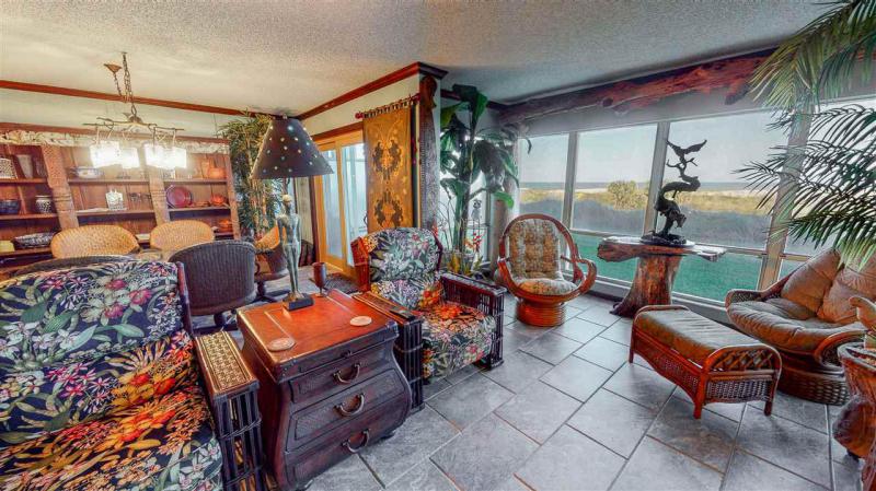 Location is the key with this 3br/2ba condo offering fabulous views from this first floor direct ocean front beach get-a way! Sit on one of your 2 patios and enjoy your morning coffee as the sun rises with the warm breeze of the ocean. This condo is uniquely decorated and updated for you to make this your year round beach get-a-way. A must see! Will not last long.